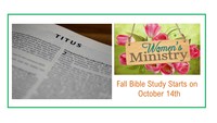 Women's Fall Bible Study Begins Tuesday, October 14th Book of Titus Books are available for purchase at the back counter for $10. Learn More